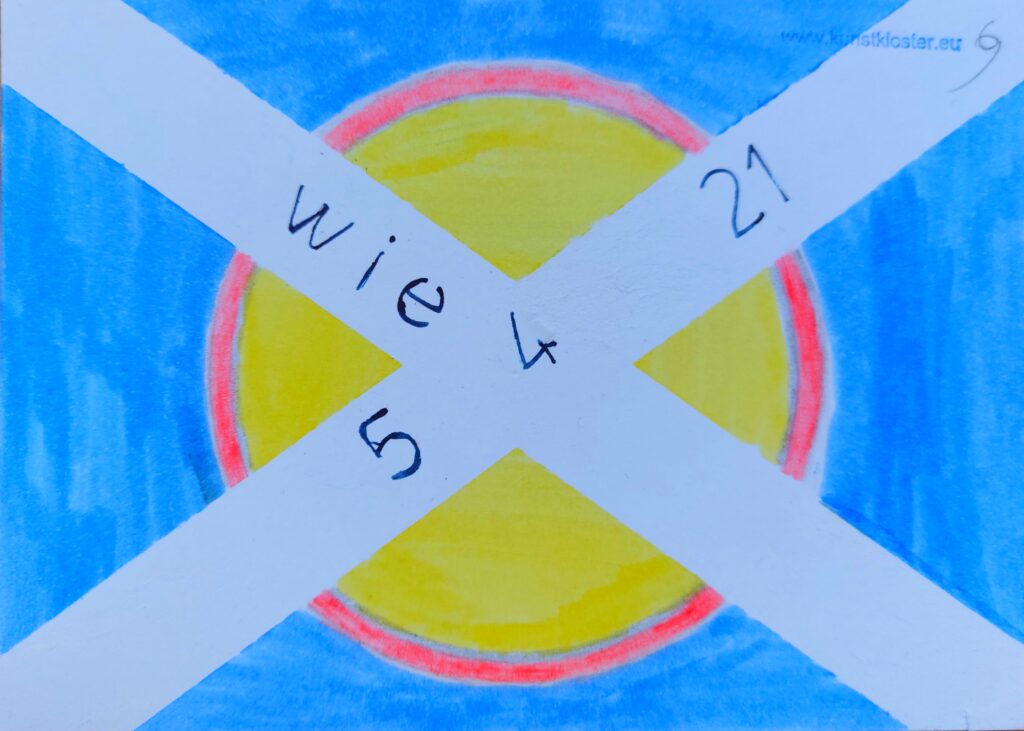 Die Motive zur Zell-Erneuerung sind im Juni 2024 entstanden (Buntstift auf A 5 Postkarte) Texte: Franziskus Klarname.